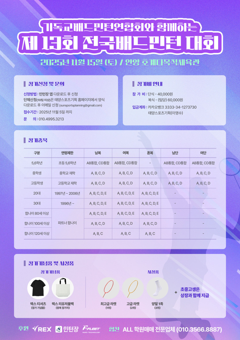 -기독교연합회와 함께하는- 2025 제13회 전국배드민턴 대회 > 대회공지